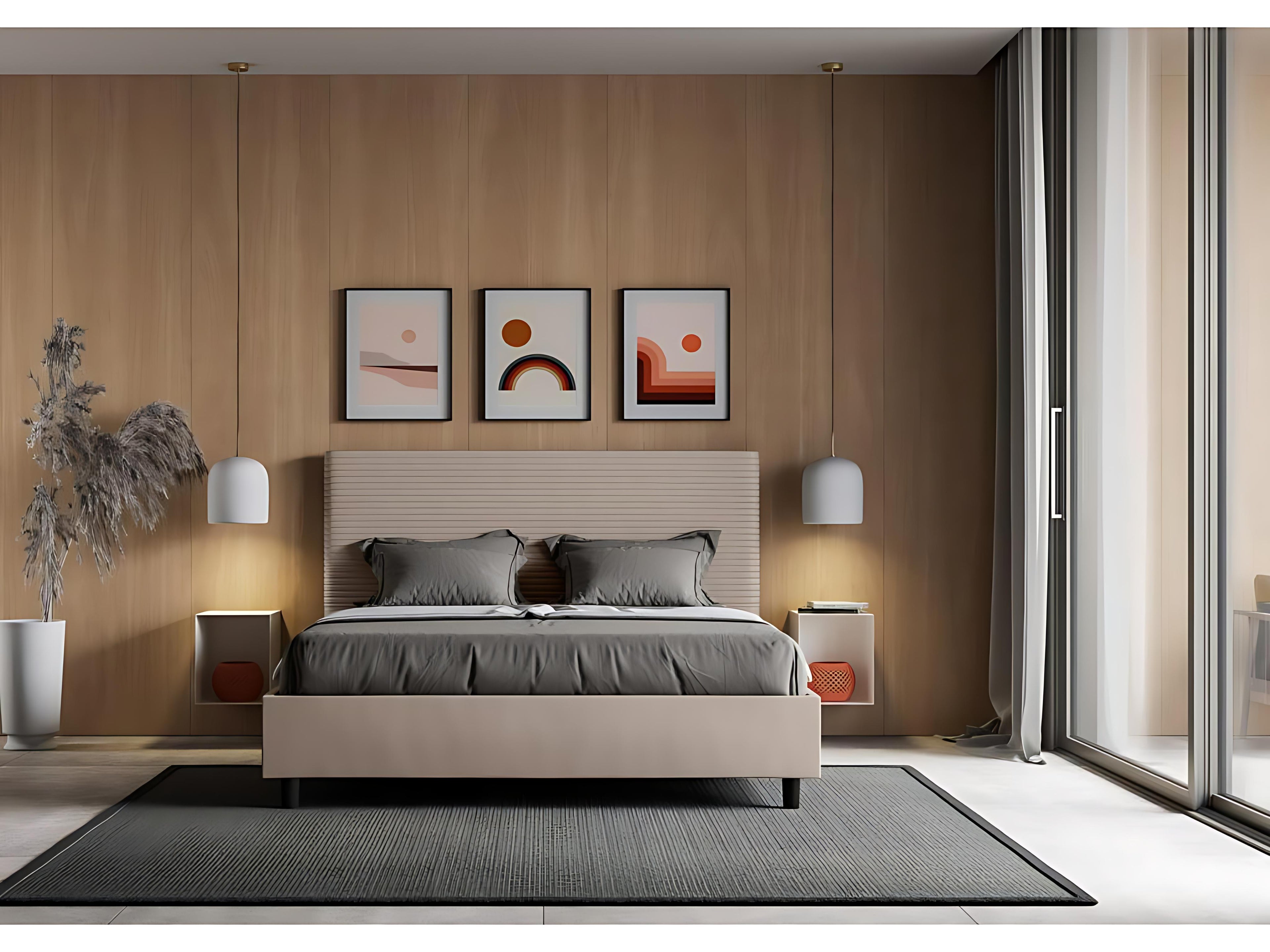 Banquette coffre capitonnée avec poufs tissu beige Boislis - Lot de 3 JCGK38766